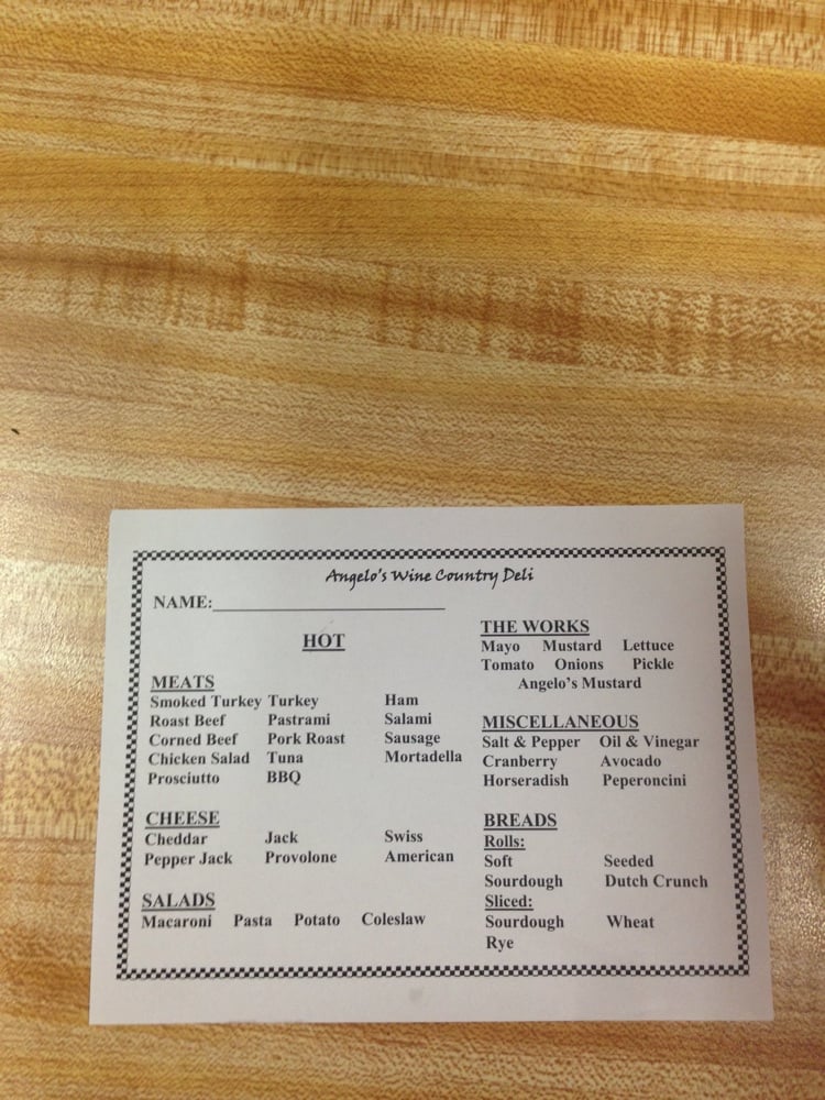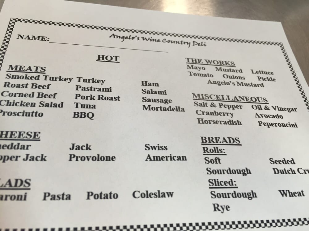 Angelo’s Wine Country Deli Menu (Update 2025)